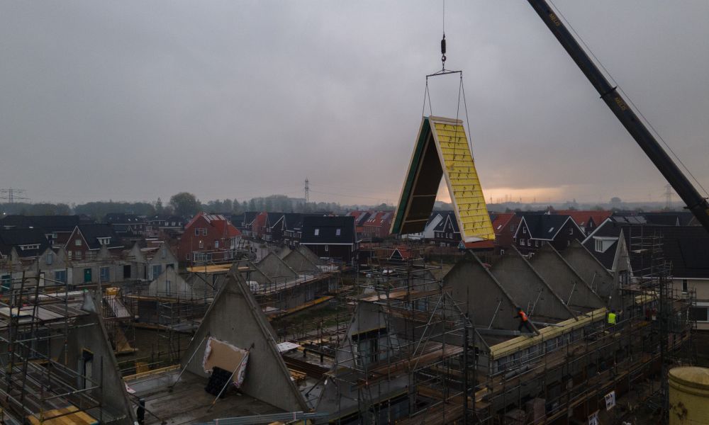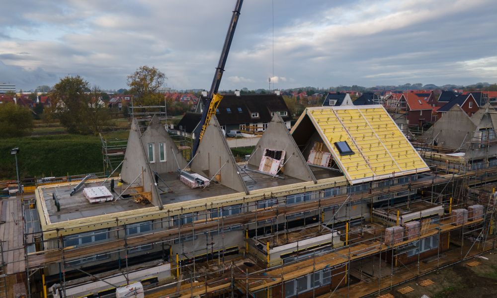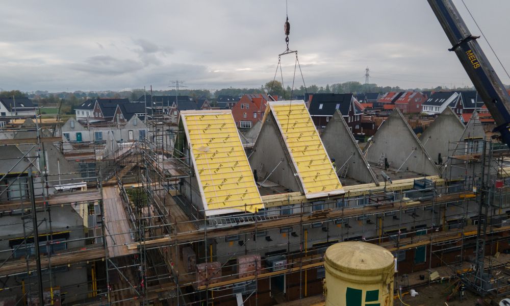 Hoewel niet alle aannemers in deze wijk gebruikmaken van Linex, zijn we trots op het deel dat we hier wél mochten realiseren. Onze prefab daken zijn volledig in eigen huis ontworpen, geproduceerd en just-in-time geleverd, afgestemd op de bouwplanning van Heijmans.